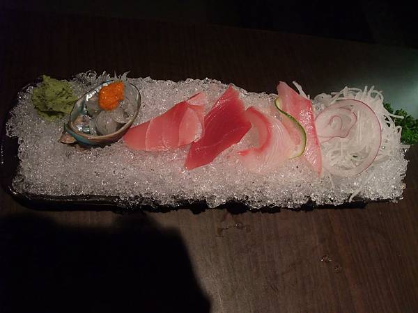最右邊九孔殼裡的是吻仔魚,不過我覺得吻仔魚不大適合拿來作成生魚片吃